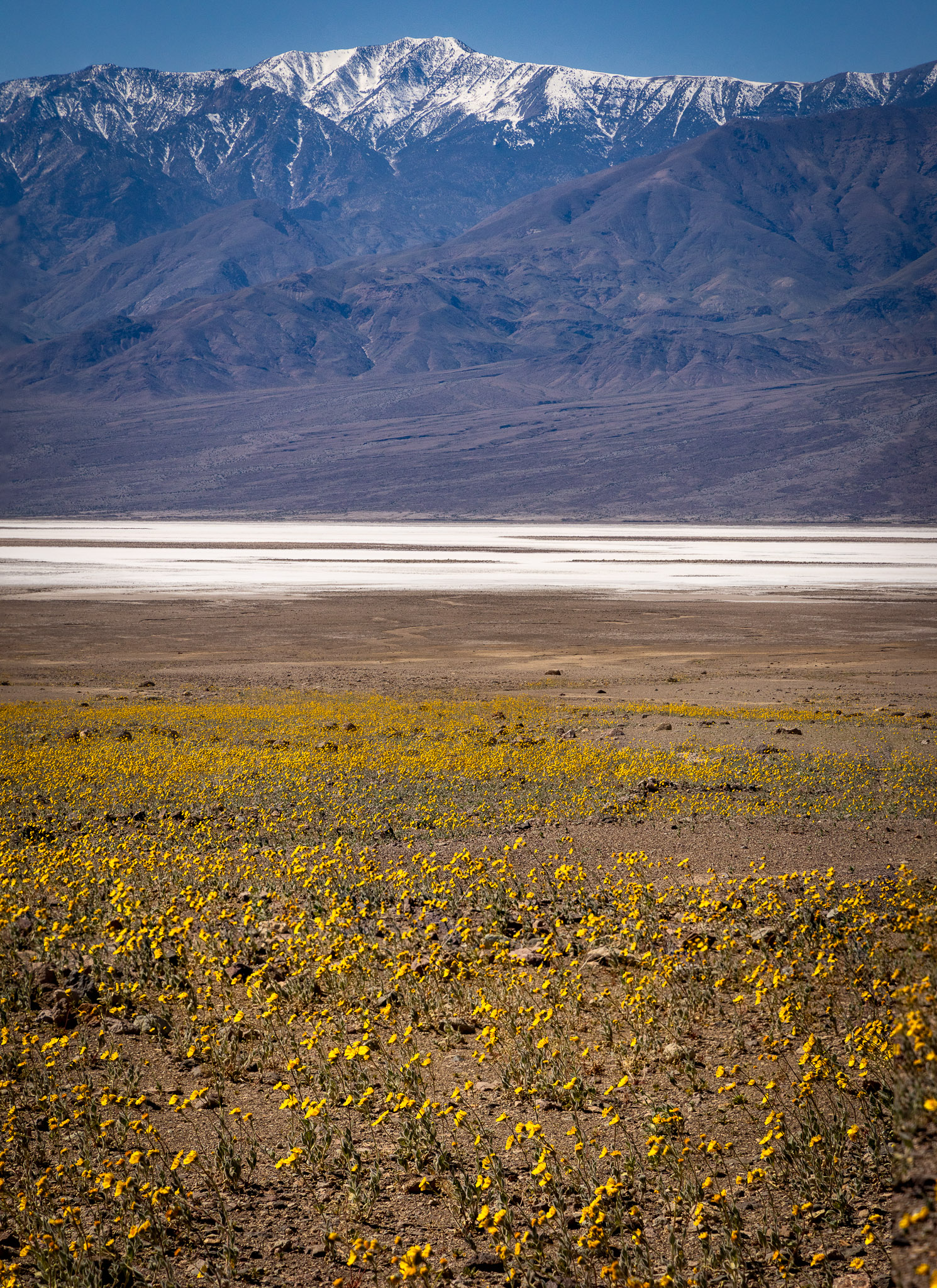Desert Gold, Badwater Basin (c. 240' below sea level), & Telescope Peak (11,043')