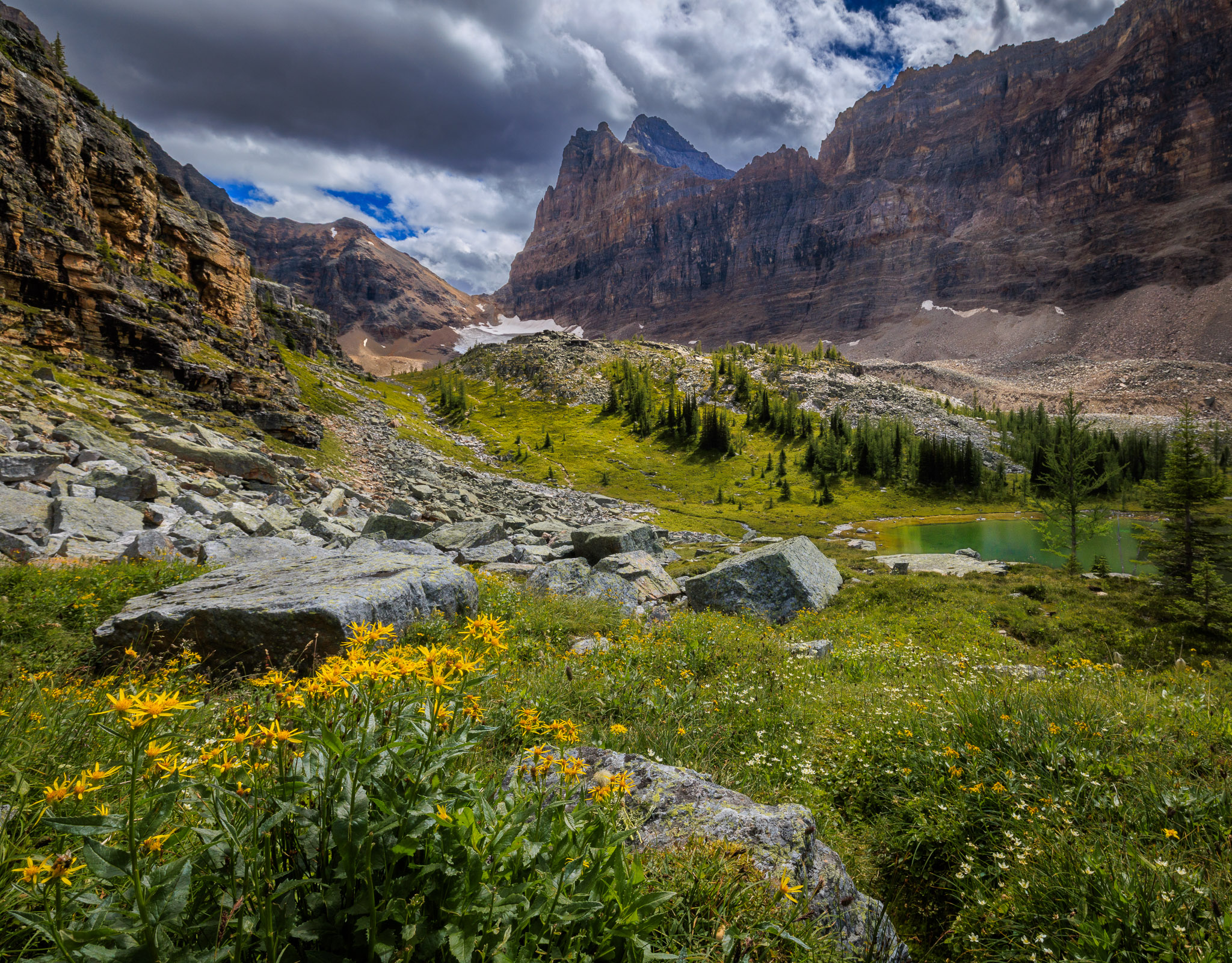 Wildflowers above Hungabee Lake, Opabin Plateau